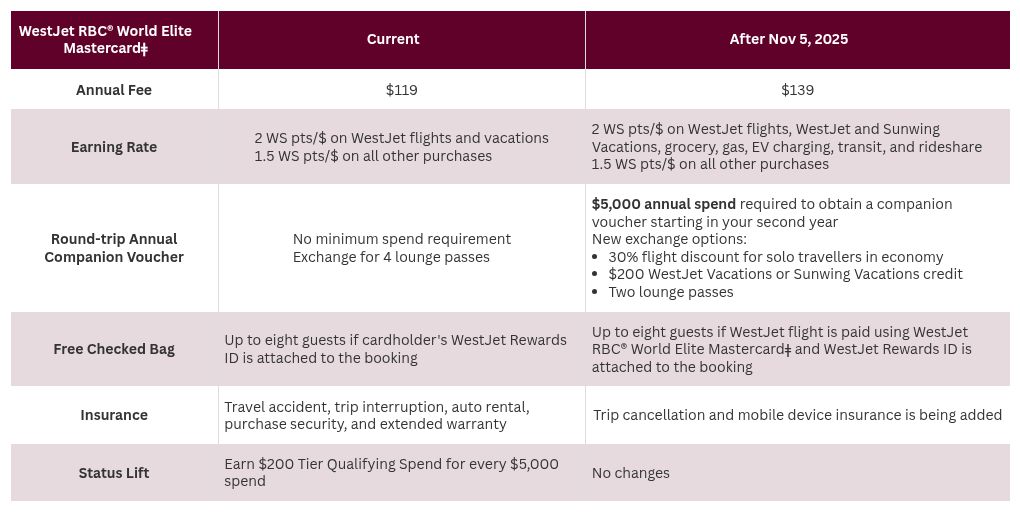 Beginning November 5, 2025, WestJet and RBC will introduce a collection of modifications to each the WestJet RBC® World Elite Mastercard‡ and the WestJet RBC® Mastercard‡.
