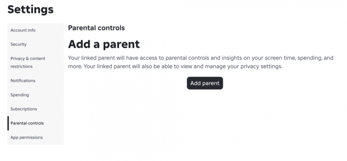 That is proper, I mentioned “accounts” as in multiple. Your little one could have an account, and you’ll too. Create your accounts, after which out of your kid’s account, navigate to Settings> Parental Controls> Add a dad or mum. Enter the e-mail on your account, after which settle for the hyperlink account request in your inbox. You will must confirm your age and identification to indicate you’re a dad or mum.