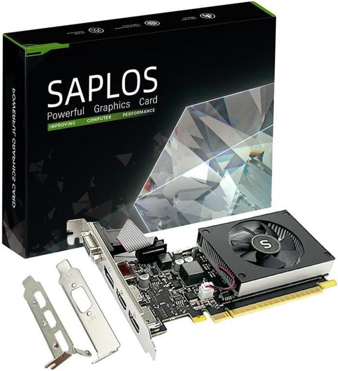 SAPLOS GT 730 4GB Graphics Card, 2 HDMI, DisplayPort, VGA, DDR3 64-bit, Low Profile Video Card PC, Pc GPU, Low Energy, PCI Specific x8, DirectX 12
