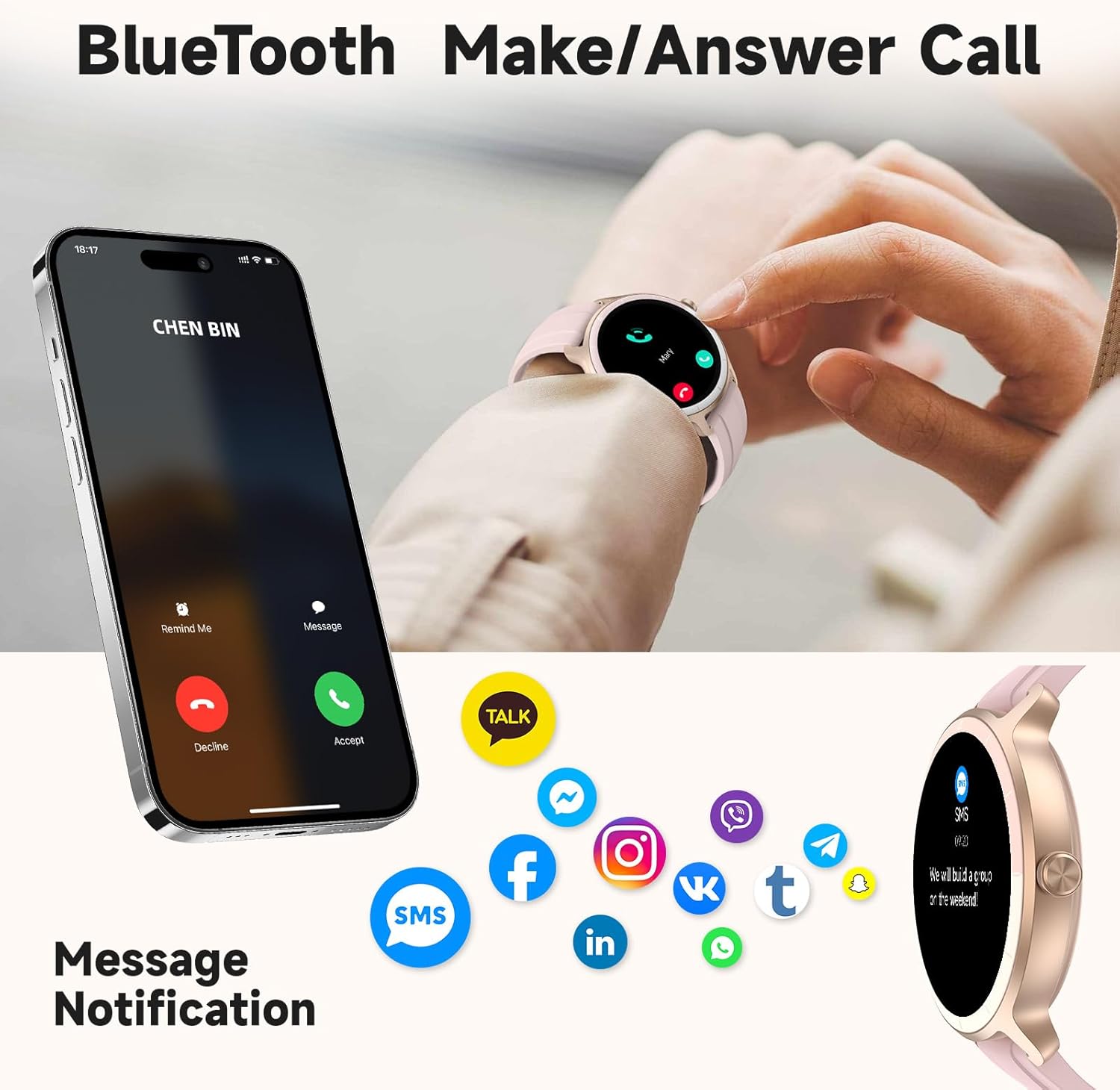Bluetooth Name & Sensible Notifications: The android ios smartwatch ladies males Join with the cellphone by means of Bluetooth 5.3 and app. It built-in microphone and high-performance speaker guarantee clear audio high quality. Keep linked with the power to make and obtain calls, even when your is driving or cooking. Retailer contacts, examine name logs, Obtain real-time message notifications from SMS, Fb, WhatsApp, Instagram, TikTok, Twitter, and extra, so that you by no means miss essential updates.