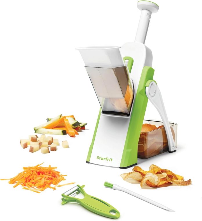 Embrace the artwork of culinary precision with the Starfrit Pump-N-Slice, a revolutionary kitchen gadget designed to remodel the best way you put together your fruit and veggies. Engineered for effectivity and ease, this revolutionary software means that you can obtain good slices with a easy pump motion. The ultra-sharp chrome steel blades glide by way of produce with unparalleled ease, providing adjustable thickness from paper-thin 0.5 mm to a considerable 8.0 mm. Whether or not you are crafting delicate garnishes or getting ready sturdy dices, the Pump-N-Slice caters to quite a lot of cuts, together with julienne sizes. Its compact design ensures it’s a space-saving gem in your kitchen, whereas the dishwasher-safe elements promise a hassle-free clean-up. Paired with the versatile 2-in-1 Starfrit peeler, geared up for each straight and julienne peeling, your kitchen duties grow to be a mix of simplicity and class. Say farewell to the cumbersome chopping chores and welcome the swift, fashionable performance of Starfrit’s newest improvements.