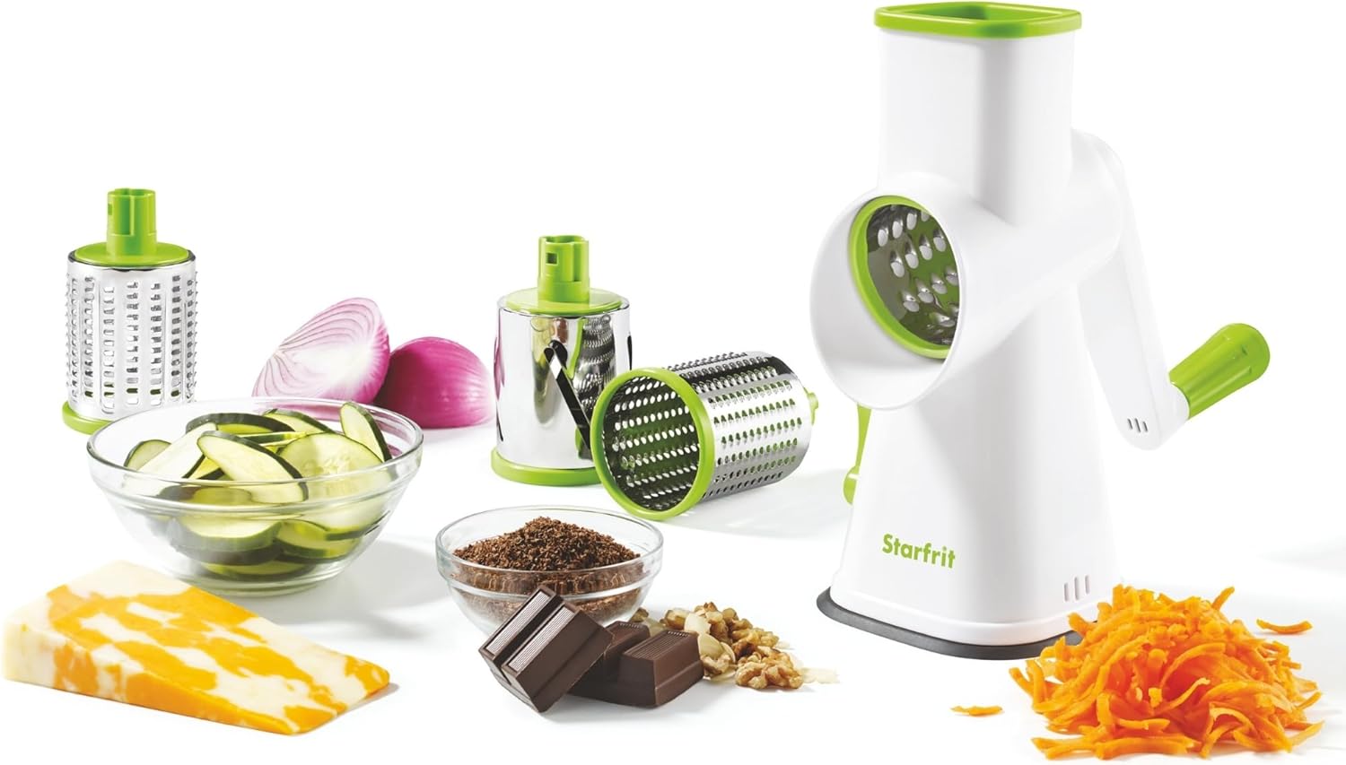 The Starfrit Drum Grater is the last word kitchen device for anybody needing to grate, slice, or crush components rapidly and effectively. With its 4 interchangeable stainless-steel barrels—fantastic grating, coarse grating, slices, and crushed ice—you’ll be able to simply deal with quite a lot of duties with minimal effort. Whether or not you’re prepping greens for salads, grating cheese, or making frozen cocktails, this versatile grater simplifies meals prep. The grater options ultra-sharp blades, a suction base for added stability, and a security pusher information to make sure easy, safe operation. It’s good for giant portions and ensures straightforward cleanup with removable items.