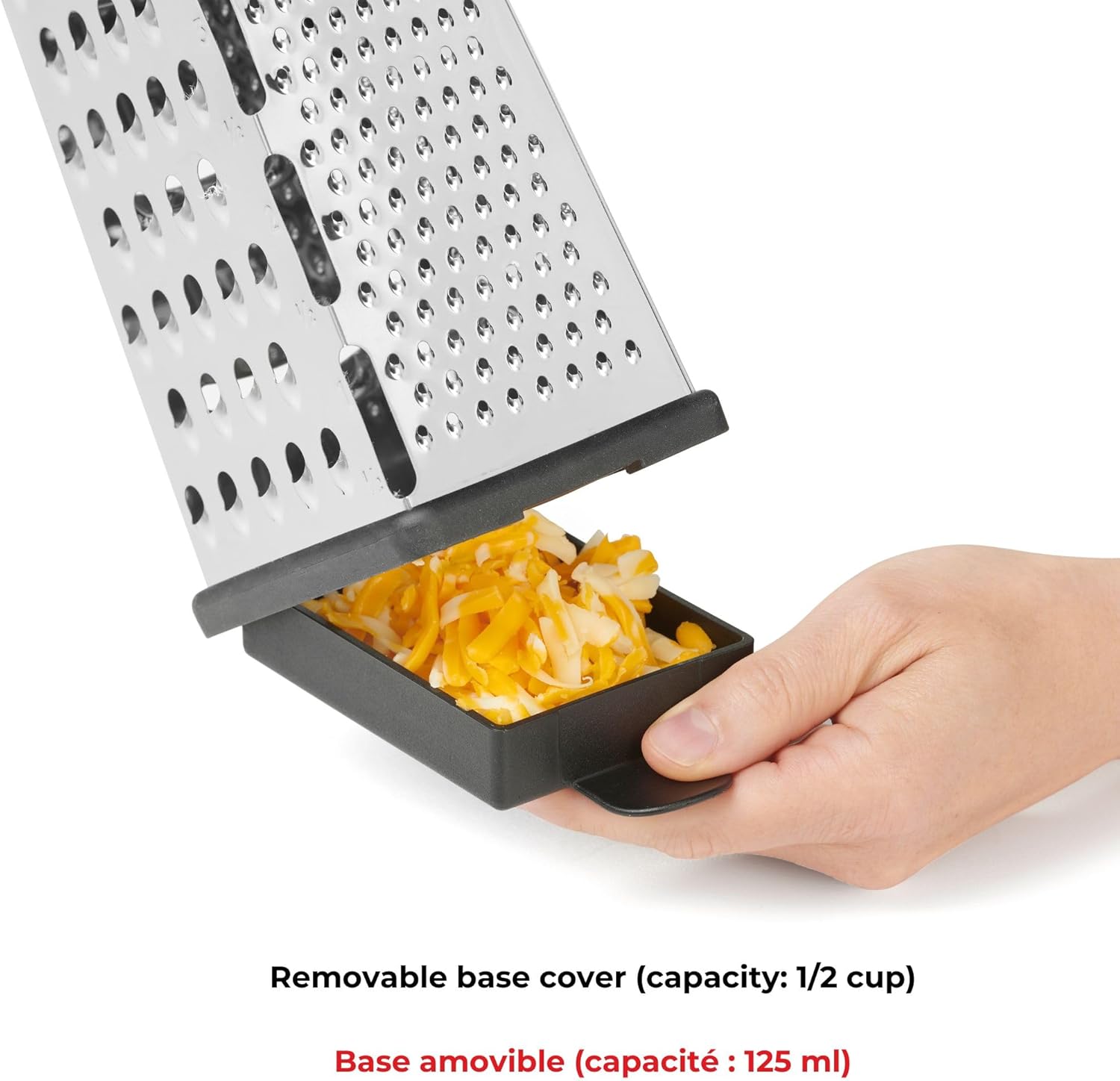 Introducing the Starfrit 4-sided field grater, your final kitchen companion for easy meals preparation. This versatile grater boasts 4 precision-engineered blades, permitting you to effortlessly obtain coarse, medium, and high quality grating, in addition to flawless slicing of your favourite substances. Say goodbye to guesswork with its distinctive nook cut-outs that includes measurements that provide you with a sneak peek of your grated output. Plus, the detachable base cowl with a beneficiant ½ cup capability ensures mess-free grating and straightforward ingredient assortment. Designed along with your security and luxury in thoughts, it includes a non-skid base for stability and a large, comfy deal with with a thicker grip, making your culinary adventures a breeze. Elevate your cooking recreation with the Starfrit 4-sided boxed grater and unlock a world of scrumptious potentialities!