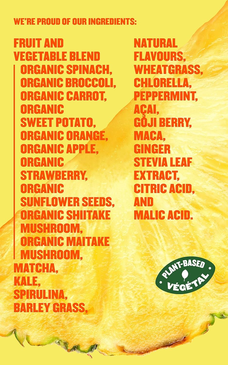 SUBI Greens Superfood Pineapple Mango Vegetable Powder, 20+ kilos of vegetables and fruit go into 1 bag, Made in Canada, Superfood Elements: Matcha, Kale, Barley Grass, Spirulina – 40 Day Provide