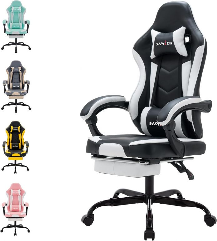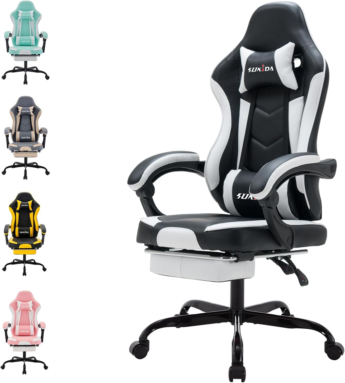 SUKIDA Players Alternative Gaming Chair – Gaming Chairs for Adults 300lbs, Ergonomic Gamer Gamingchair with Footrest Cool Computer Pc Cozy Leather-based Swivel Recliner Adjustable Backrest Therapeutic massage Lumbar, Black