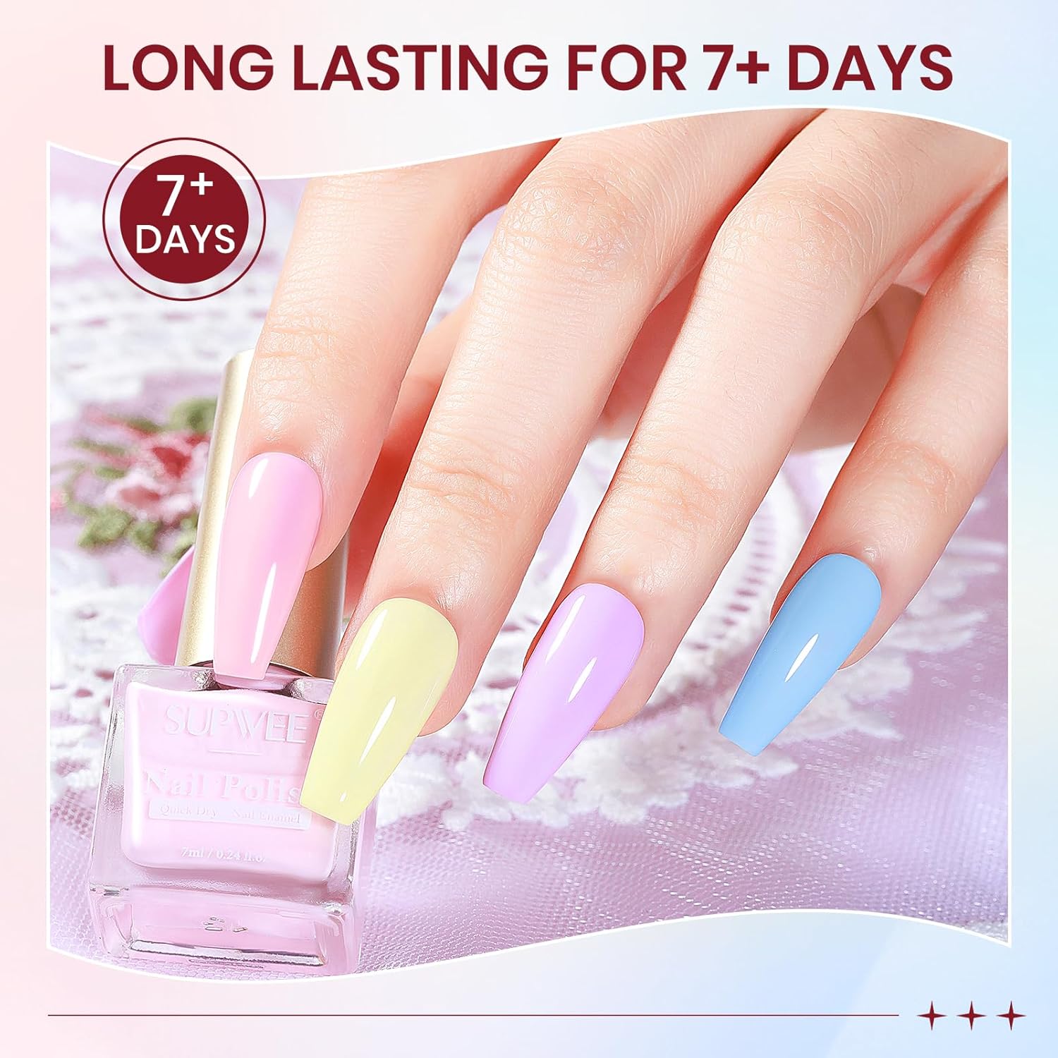 Versatile Shades:This fingernail polish assortment is the proper alternative for any event. Whether or not it is a day on the workplace, a cocktail party, or a trip getaway, these pastel shades complement any outfit, showcasing class and understated appeal