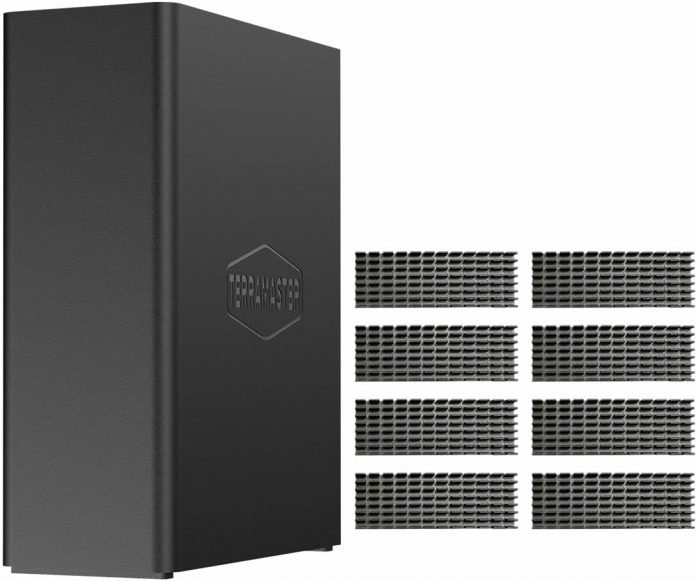 TERRAMASTER F8 SSD Plus NAS – 8Bay All SSD NAS Storage Core i3 8-Core 8-Thread CPU, 16GB DDR5 RAM, 10GbE Port, 8 Warmth Sinks Included, Palm-Sized Community Connected Storage Peak Efficiency (Diskless)