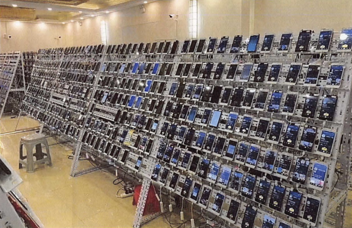 An image of a telephone farm with 1,250 cell units appeared within the indictment.