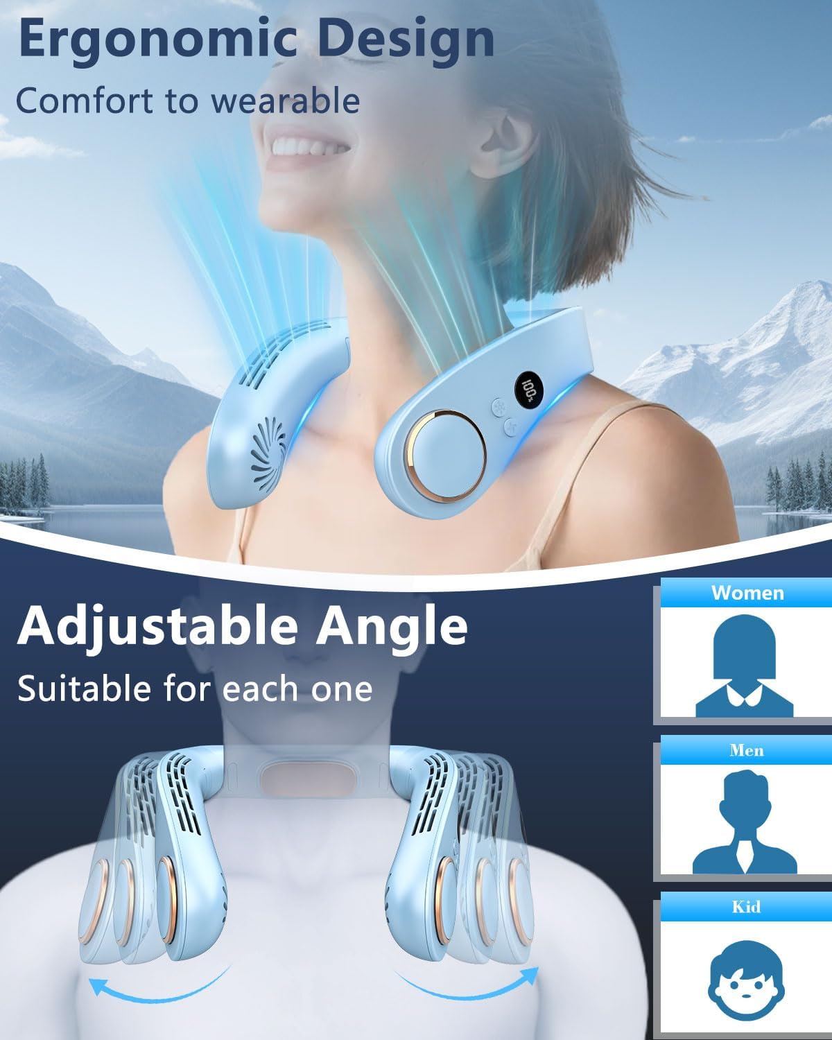 【Improve Neck Fan with Cooling Plate】Progressive neck air conditioner fan provides a model new private cooling expertise;On the idea of an extraordinary moveable fan, a cooling plate is added in the back of the neck,quickly lowers the temperature round your neck in 1s,twin mixture of cooling plate and fan present on the spot reduction from the warmth.Ergonomic design,neck followers completely becoming the curvature of the neck, making certain one of the best air flow impact