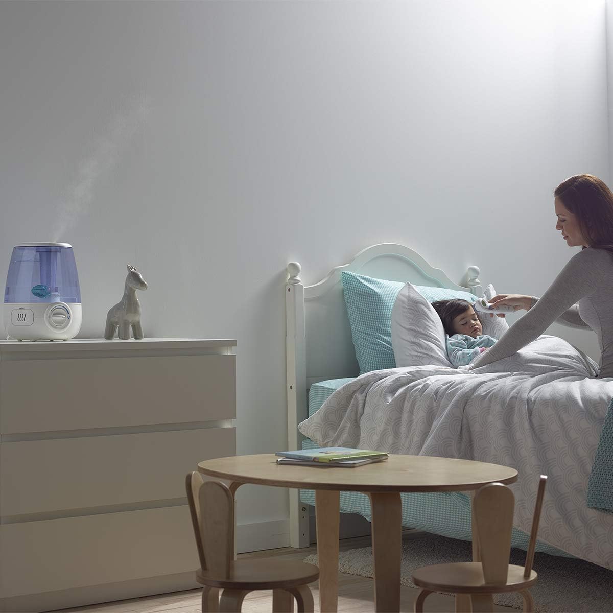 -[Cool Visible Mist] This filter-free, quiet, ultrasonic humidifier supplies cool seen mist. It options twin scent pad slots for added aromatherapy consolation, adjustable moisture output settings & seen water window. Dimensions: 9.53″ L x 8.54″ W x 12.13″ H (24.2 x 21.7 x 30.8 cm)