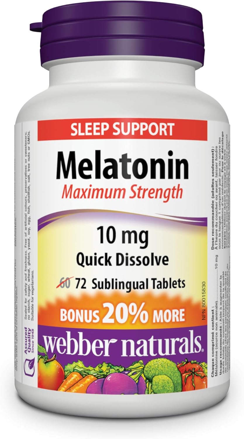 Webber Naturals Melatonin 10 mg Most Power, 72 Fast Dissolve Tablets, For Sleep Assist, Vegetarian