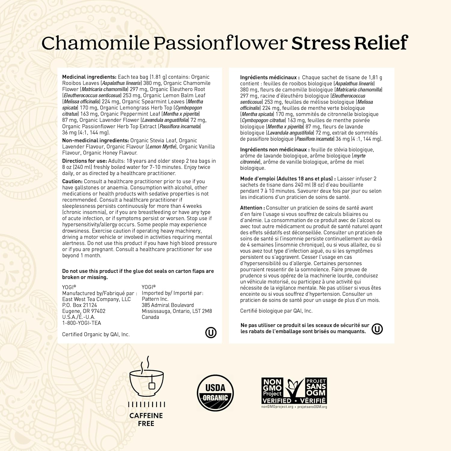 Taste: Yogi Chamomile Passionflower Stress Reduction tea combines Rooibos Leaf with floral Chamomile and Lavender for a deliciously soothing natural tea mix.